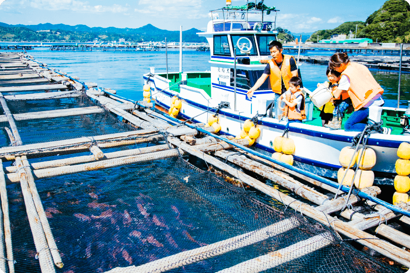 岩谷水産では、串本の地場産業である養殖業を子供たちに、もっと身近に感じてもらいたいという思いで、エサやり体験など様々な海の楽しみ方・学び方を発信しております。